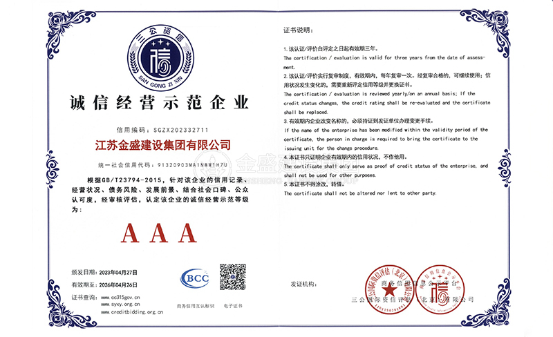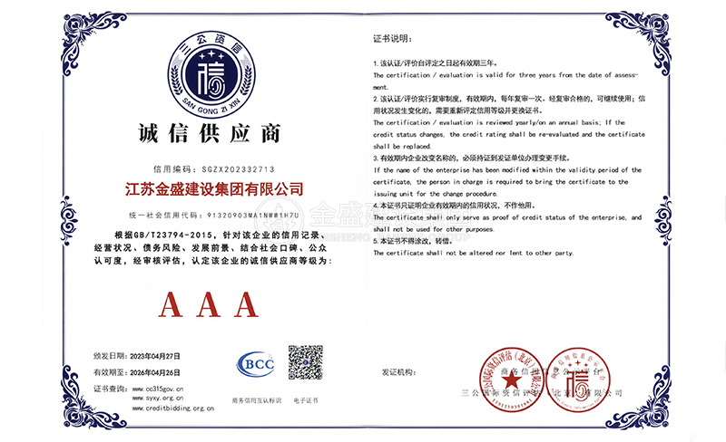 • 3A級(jí)資信等級(jí)證書